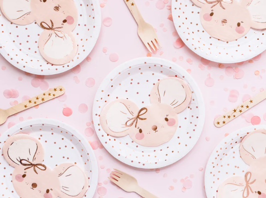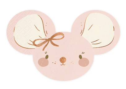Papirservietter i form av en mus med gullmetalliske detaljer. Perfekt til Babyshower eller bursdag!
