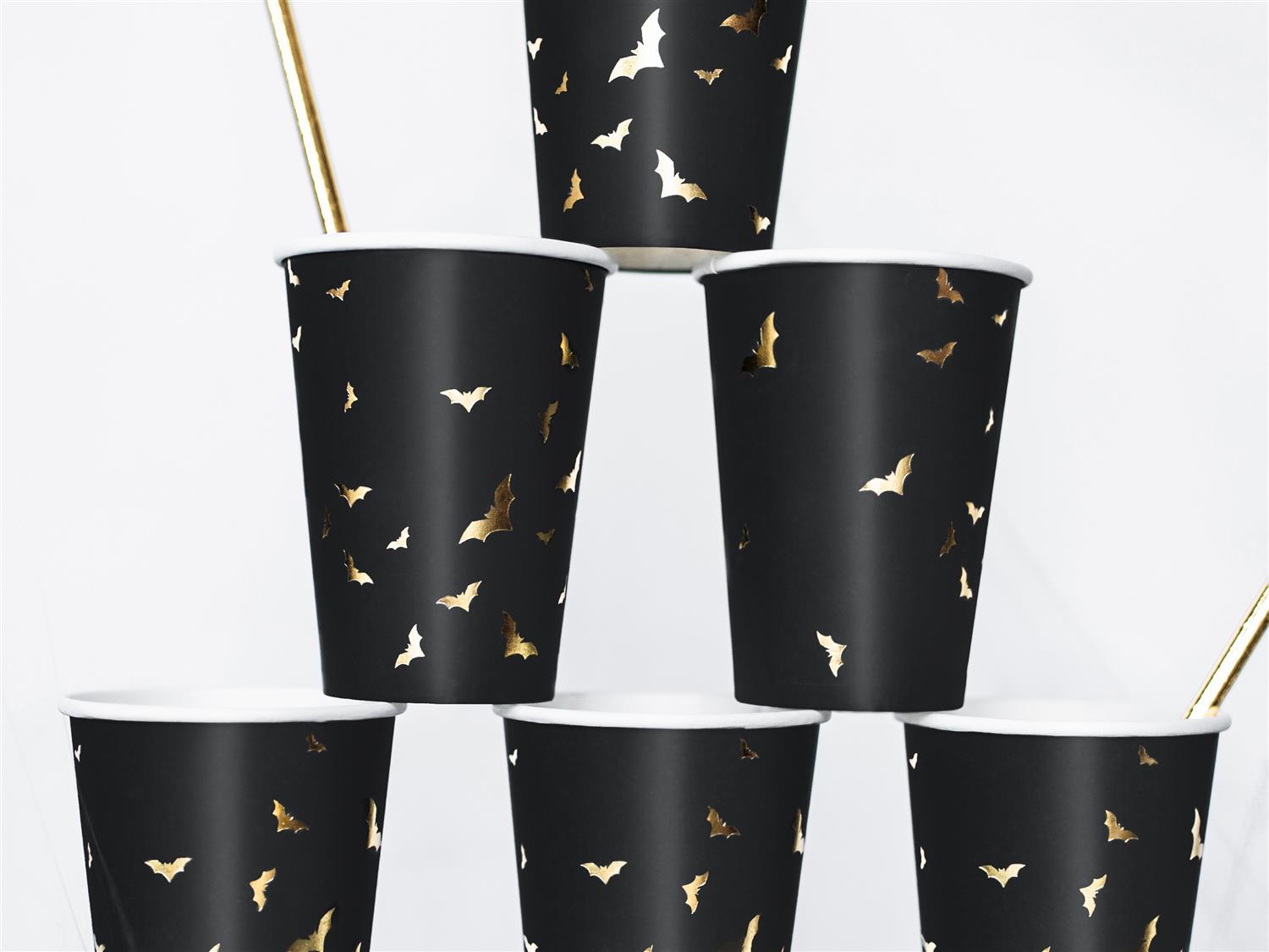 Papirkopper, svart med flaggermus i gull